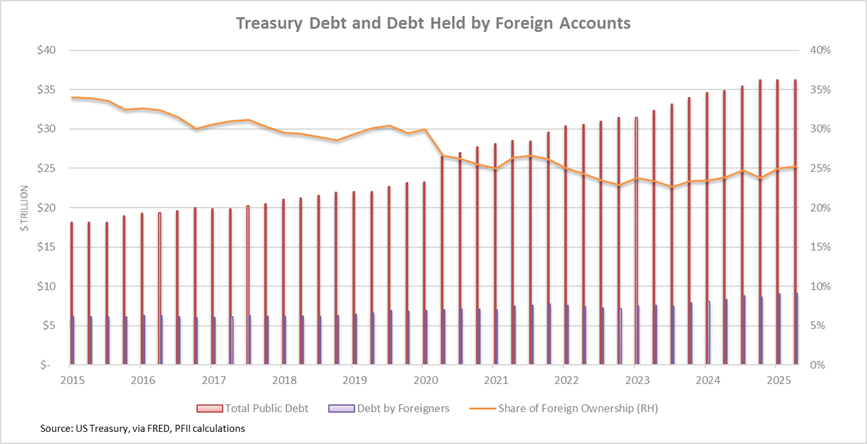 Foreign investors own more than $9 trillion of Treasuries, nearly 25% of the total outstanding.